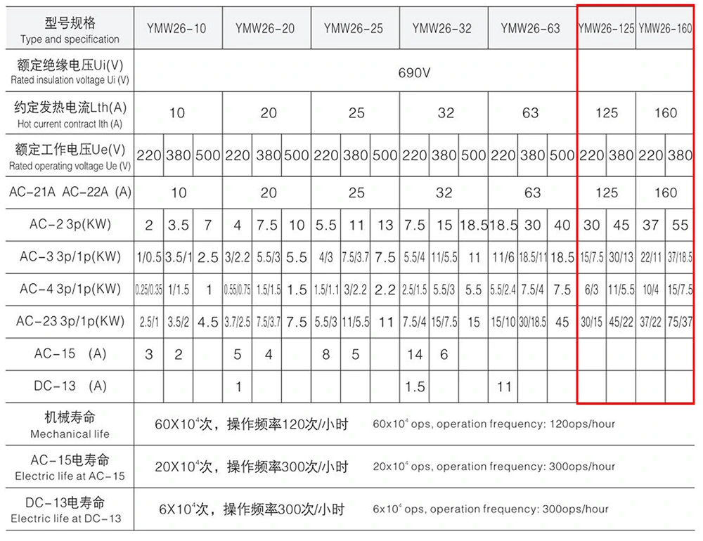 - Circuits applicables : circuits CA avec une fréquence de 50 Hz et une tension nominale jusqu'à 690 V ; Circuits DC avec tension jusqu'à 240 V