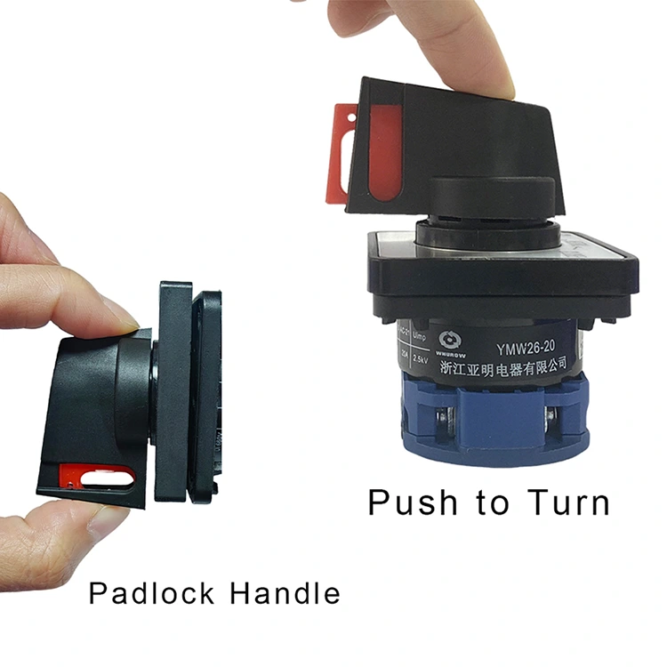 En tant que fabricant professionnel d'interrupteurs électriques avec plus de 30 ans d'expérience, YAMING lance le commutateur à came rotatif à commande par cadenas 20 A (modèle interne : YMW26-20NS), un chef-d'œuvre intégrant des décennies d'expérience de fabrication et d'innovation technologique. Ce produit est conçu pour améliorer le contrôle de sécurité et éviter les erreurs de fonctionnement, adapté aux circuits AC 50 Hz, max 690 V et DC 240 V, prenant en charge un courant nominal jusqu'à 20 A.