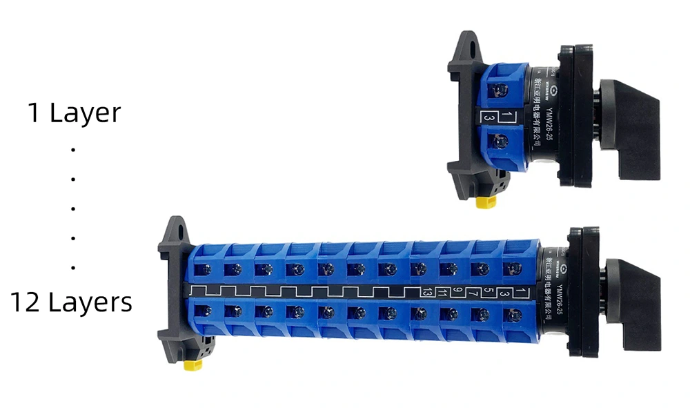 Pour répondre aux divers besoins d'application des clients mondiaux, YAMING a établi un système de classification complet pour le commutateur à came monté sur rail Din 25 A, couvrant plusieurs dimensions telles que les scénarios d'application, les types d'opérations, le nombre de sections, les angles de conversion et les formes de panneaux. La classification spécifique est la suivante :