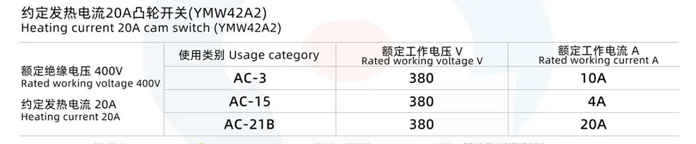 - Commutateur à came 20 A : équipé d'angles de positionnement de 30°, 45°, 60°, 90°, prenant en charge un maximum de 12 positions de fonctionnement et 1 à 12 couches de commutateurs, qui peuvent réaliser un contrôle multi-niveaux et multicanaux.