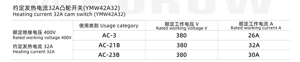 - Commutateur à came 32A : adopte les mêmes angles de positionnement de 30°, 45°, 60°, 90° que le modèle 20A, avec un maximum de 12 positions de fonctionnement et 1 à 12 couches de commutateurs. Il a une capacité de charge de courant plus forte, adaptée aux occasions nécessitant une puissance plus élevée.