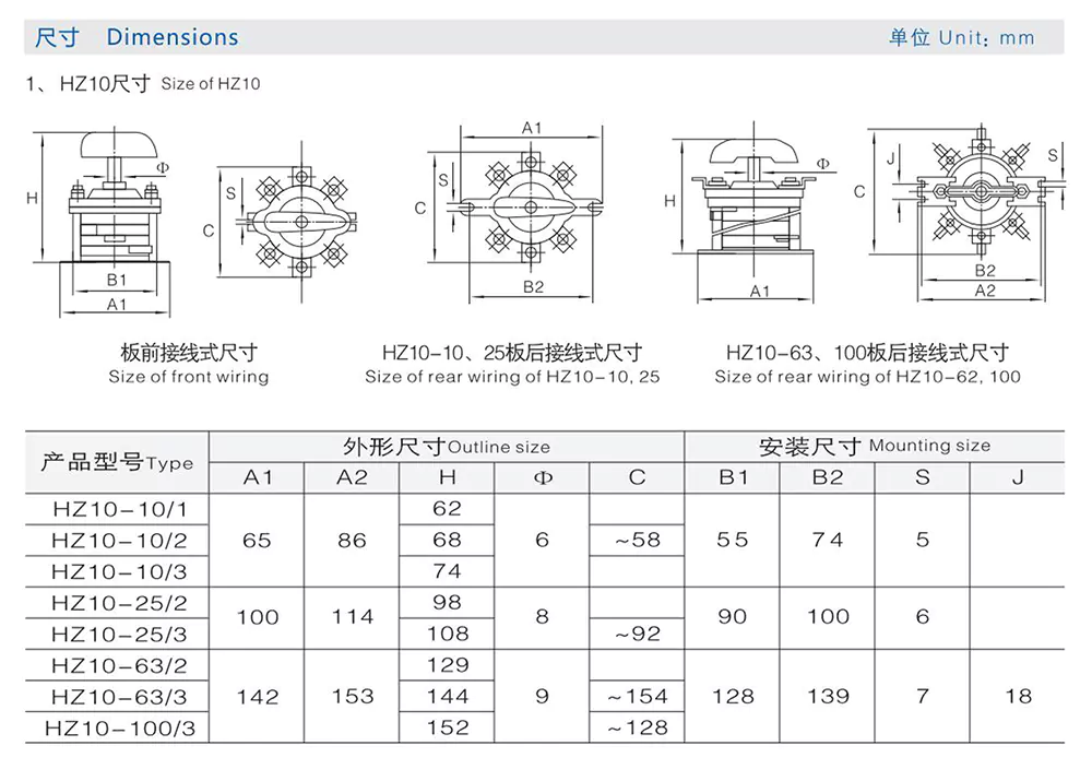 L'interrupteur combiné 10 A à installation derrière la carte HZ10-6E91 fonctionne à 50 Hz CA, prenant en charge des tensions nominales jusqu'à 380 V CA et 220 V CC avec un courant nominal de 10 A. Conçu pour un fonctionnement manuel et intermittent, il commute, déconnecte et convertit les charges mixtes résistives et résistives-inductives, et contrôle de manière fiable les moteurs AC de petite capacité.